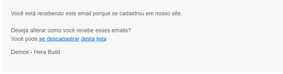 Descadastro Automático: um rodapé padrão é adicionado aos e-mails, e a gestão da lista de saída é feita automaticamente pelo sistema.