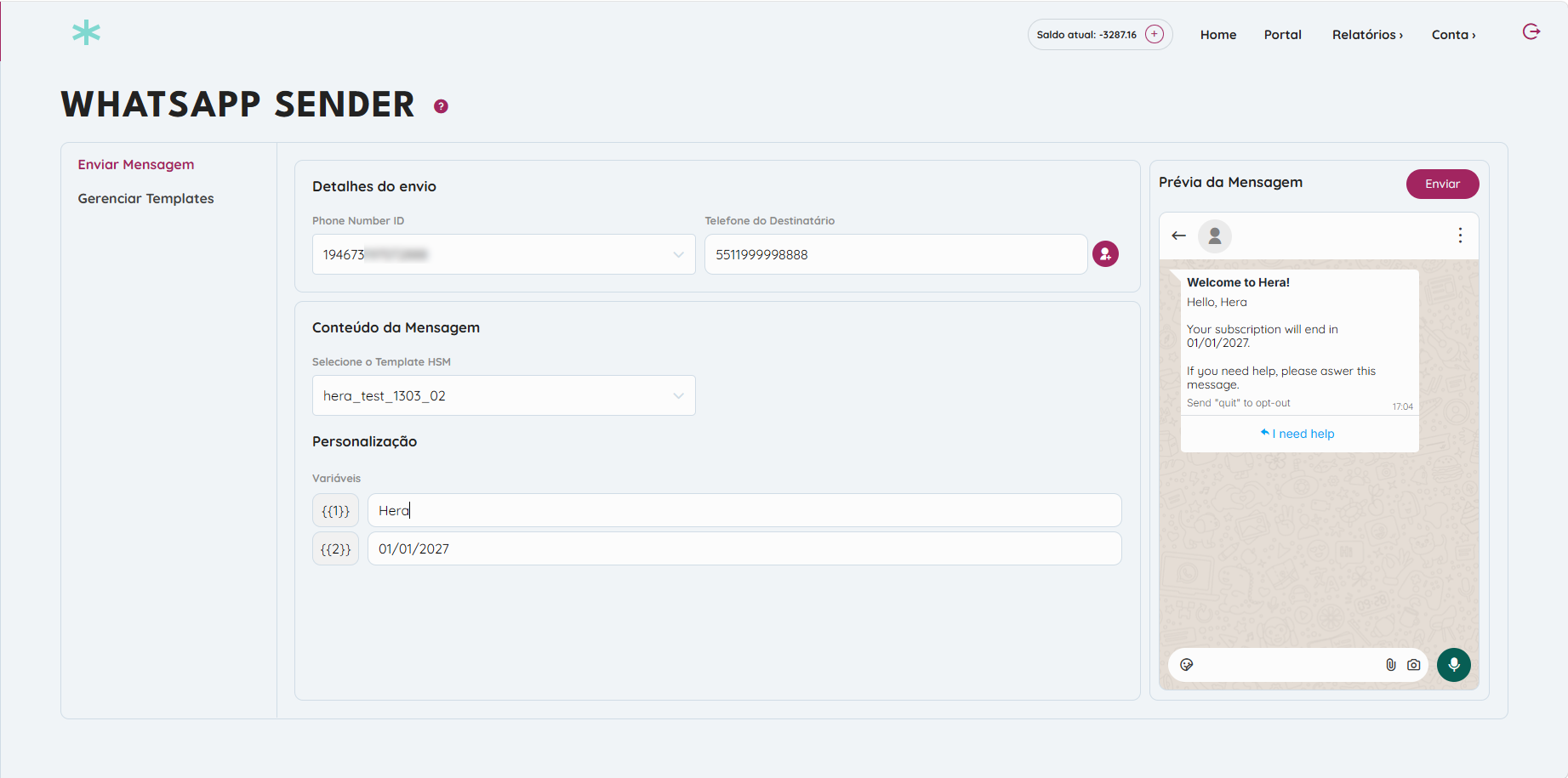 Edição e Gerenciamento de Templates de WhatsApp