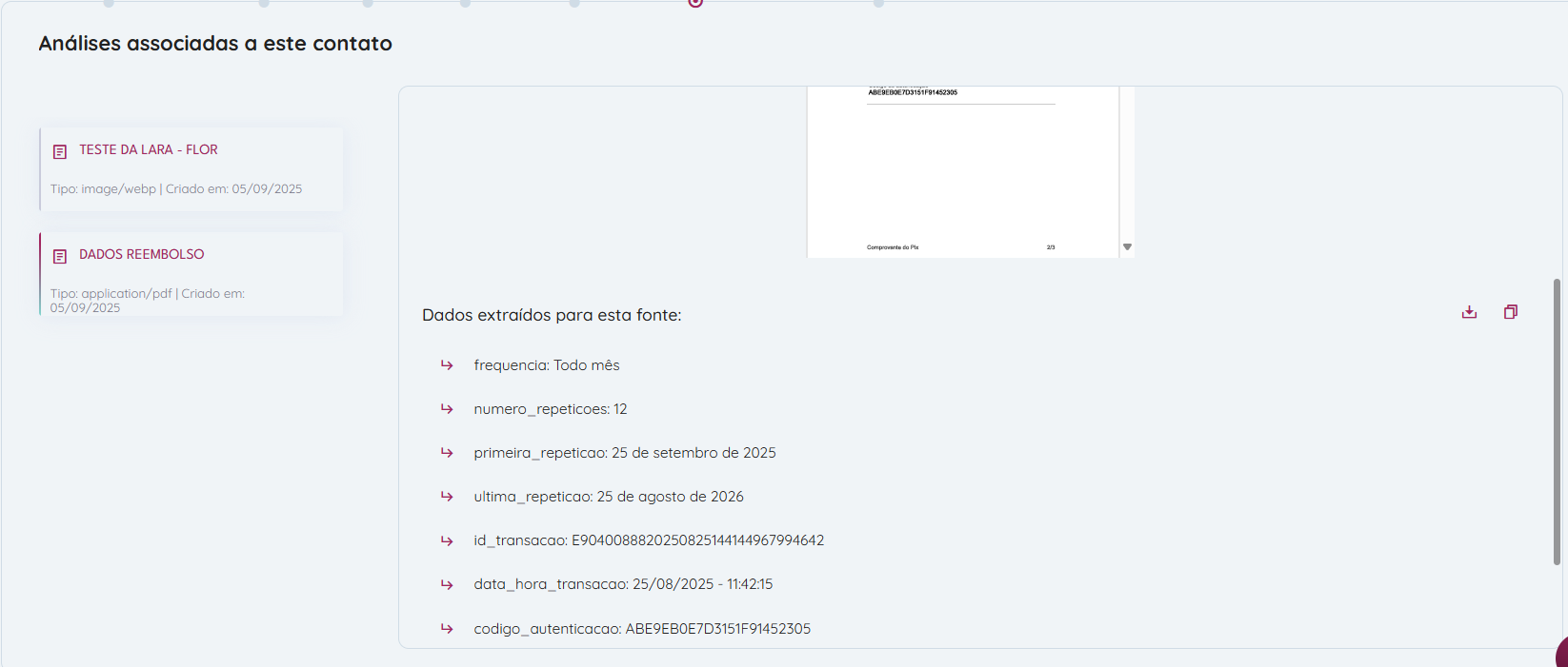 - Preview do arquivo original analisado, facilitando a comparação entre o documento enviado e os dados extraídos.