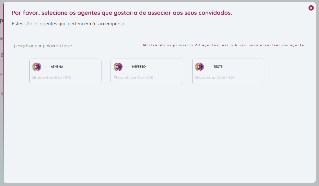- Caso você convide vários e-mails ao mesmo tempo, todos terão os mesmos acesso aos agentes que você escolheu.