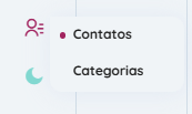 Para começar, vá até o menu lateral esquerdo, clique em Contatos 👤. A partir dessa tela, você poderá criar e gerenciar seus contatos.