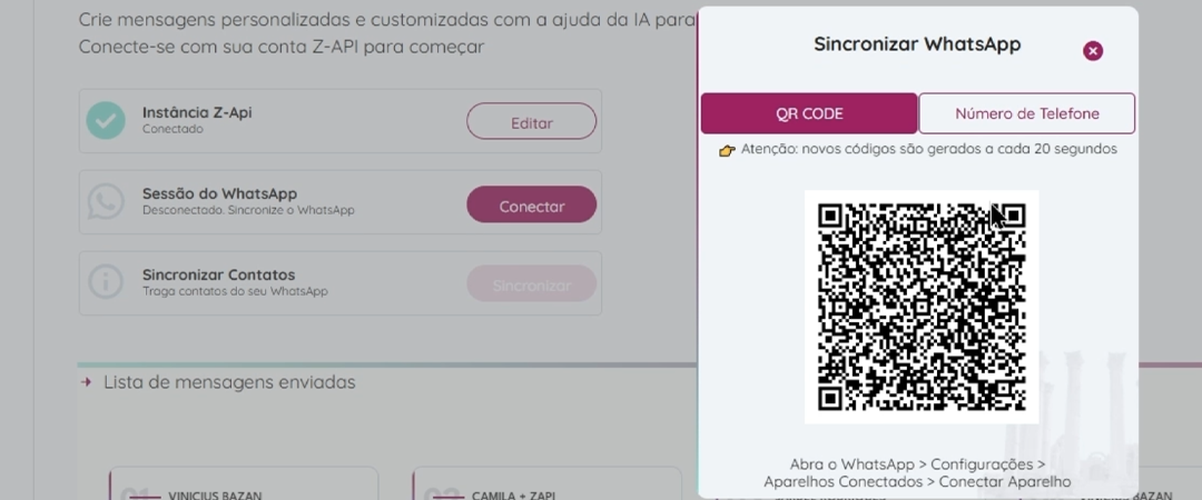 Nova funcionalidade de WhatsApp Sync, permitindo conectar seu número de forma mais simples: possibilidade de sincronizar via QR Code ou pelo número de telefone.