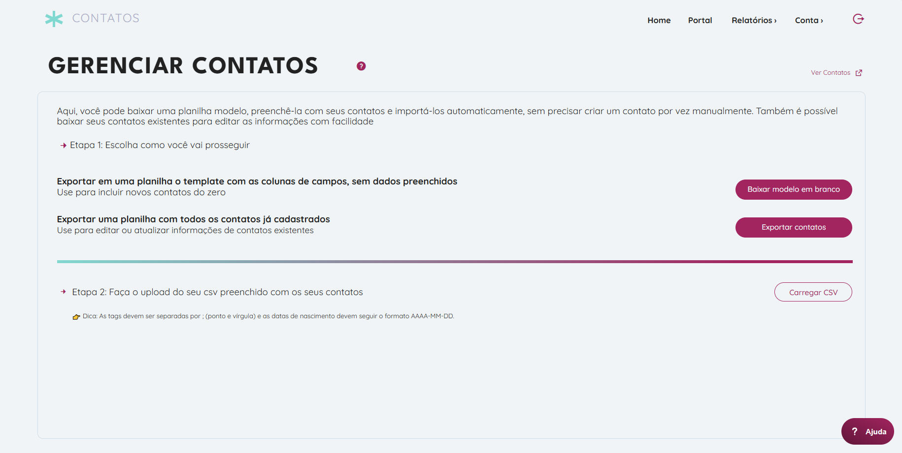 Exporte rapidamente todos os registros cadastrados na plataforma em um único arquivo. Esse recurso facilita a manipulação de dados em planilhas externas, possibilita a criação de relatórios personalizados e garante uma forma prática de realizar backups da base de contatos.