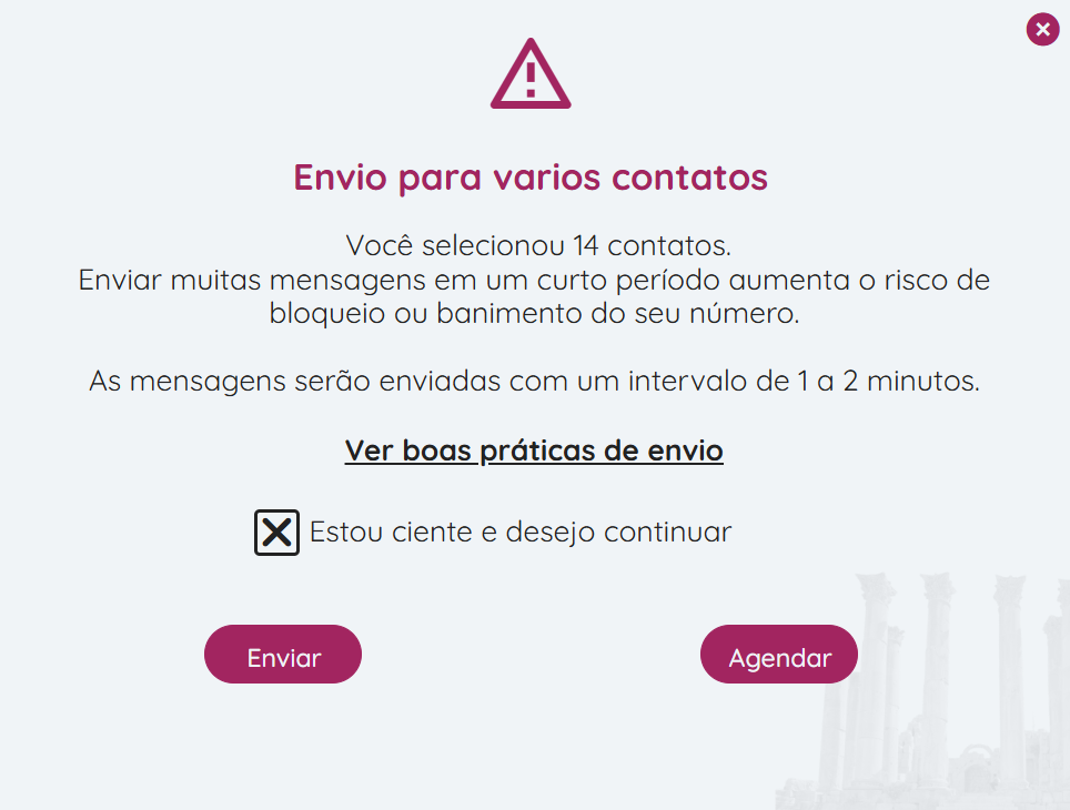 A seleção por categorias ficou mais simples. Também adicionamos visualização expandida para listas grandes, separação visual entre elementos e um aviso de confirmação ao enviar mensagens em massa.
